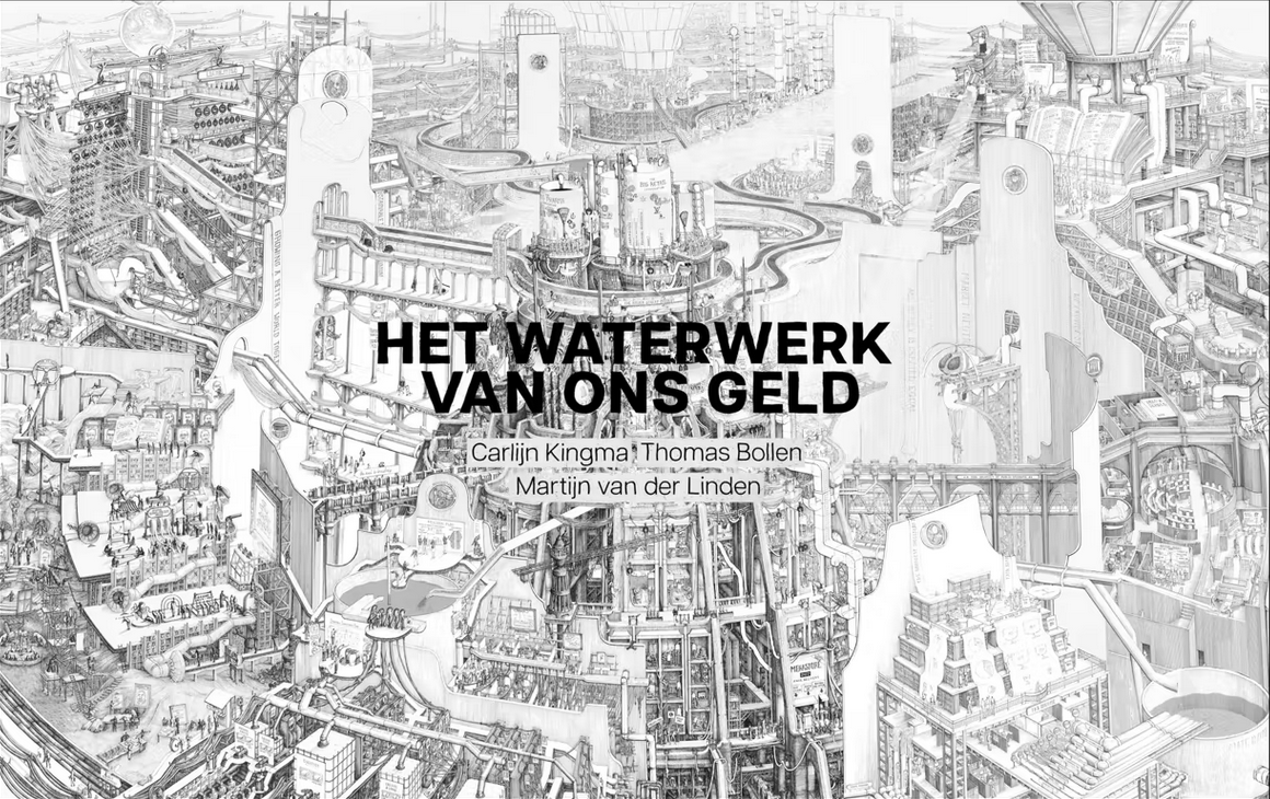 Met behulp van de metafoor ‘geld als water’ brengt architect en cartograaf Carlijn Kingma de wereld van het grote geld tot leven. Samen met Thomas Bollen en Martijn van der Linden (bestuursvoorzitter van ONE) onderzocht zij de rol van geld in onze samenleving.